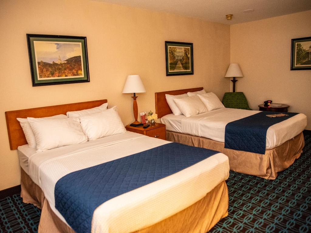 Spacious room incorporating two double beds and dresser for easy storage, phone and tea-coffee maker. Specific amenities also include a writing desk and comfortable chair, flat panel TV with over 80+ Cable channels. A mini fridge and microwave has been added to this traditional two double bed room. Bathrooms provide essentials including hair dryer, granite counter top and shower-tub combination, along with Bath and Body brand works products. Room Amenities: Coffee Maker, Hair Dryer, Cribs (Available Upon Request), Iron/Ironing Board, Microwave, Capital City View, Office Desk with chair, Refrigerator ,River View Roll-a-Way Bed (Available Upon Request)